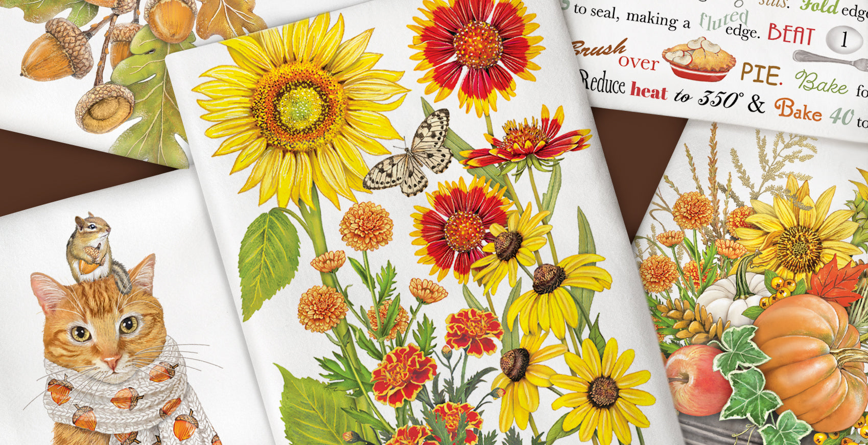 Famous for our creative designs printed on flour sack towels and other great giftware products. WHOLESALERS order NEW EVERYDAY now!