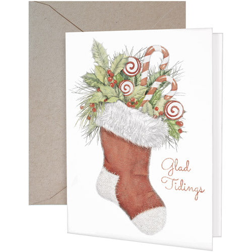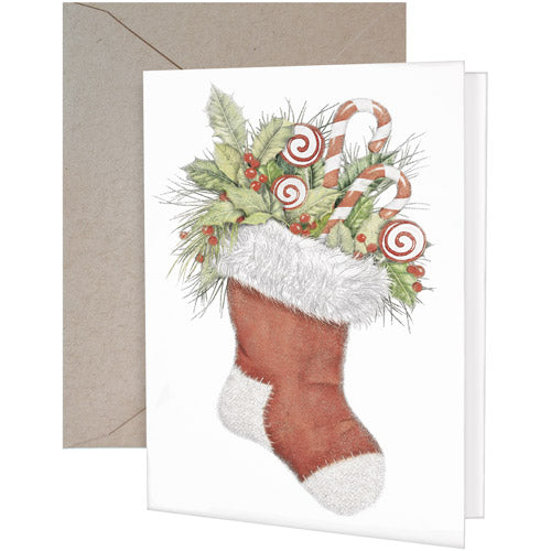 Candycane Stocking Greeting Card- Blank