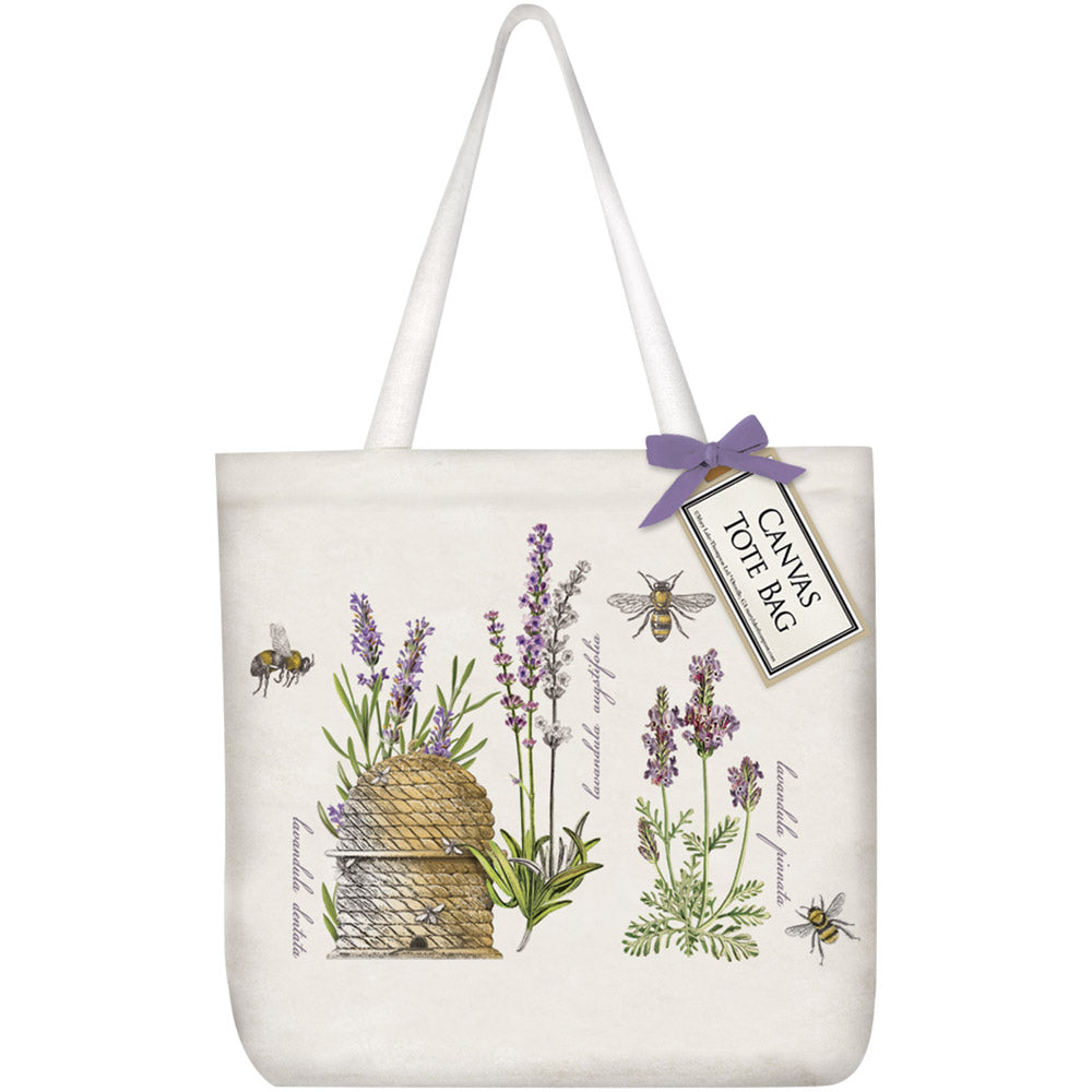 • Canvas tote printed with a decorative graphic and finished with a matching bow and hang tag.