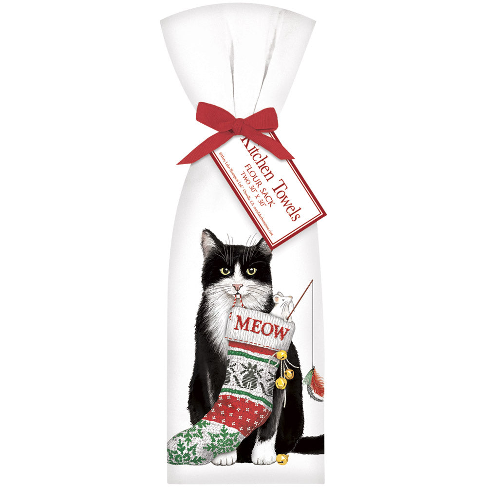 Cat With Stocking Towel Set