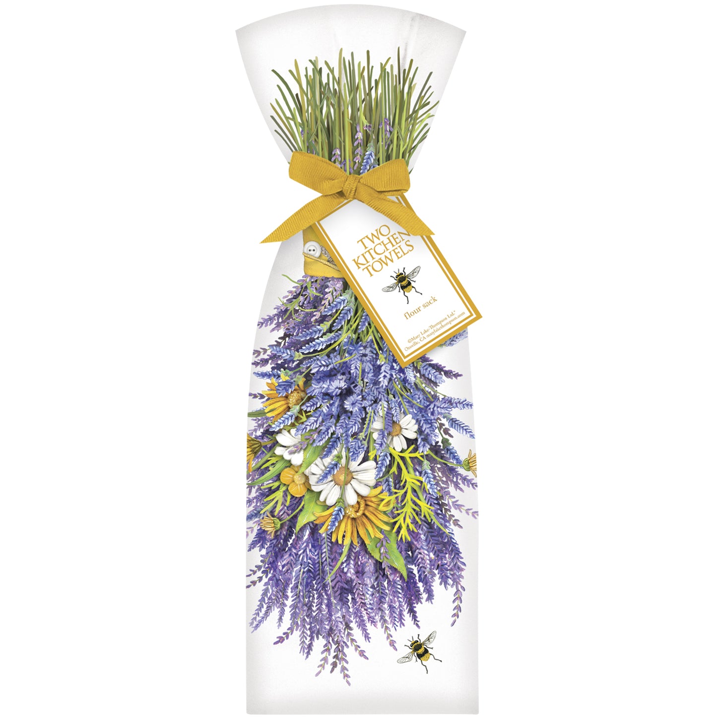 • Two hand folded flour sack towels tied with a matching bow and hang tag