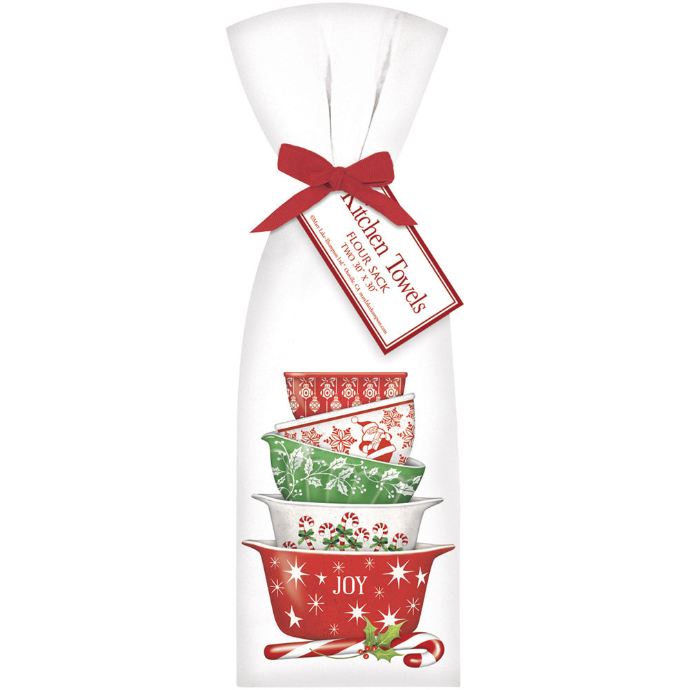 • Two hand folded flour sack towels tied with a matching bow and hang tag