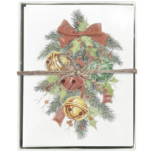 Set of eight blank cards with envelopes in a gift box tied with jute twine.