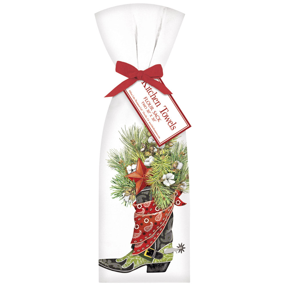 • Two hand folded flour sack towels tied with a matching bow and hang tag
