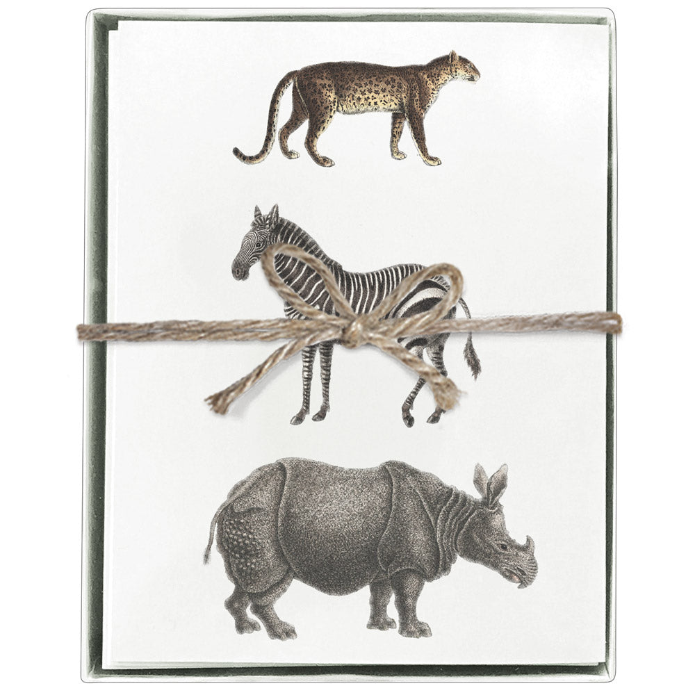 Set of eight blank cards with envelopes in a gift box tied with jute twine.