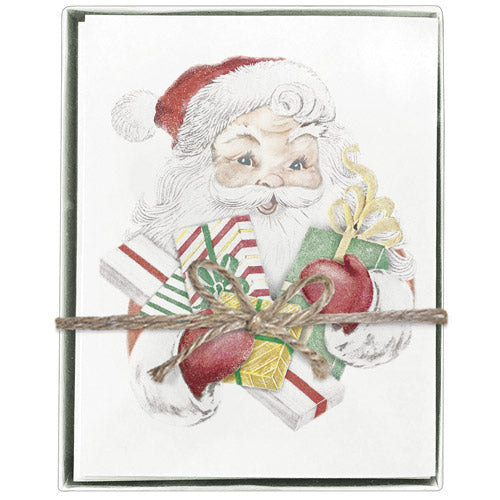 Set of eight blank cards with envelopes in a gift box tied with jute twine.