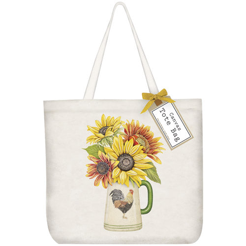 Canvas tote printed with a decorative graphic and finished with a matching bow and hang tag.