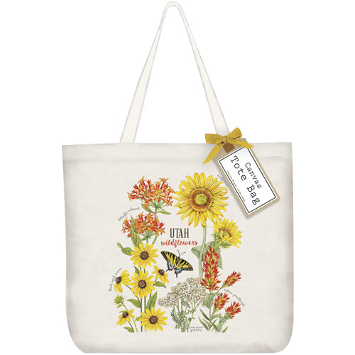 Canvas tote printed with a decorative graphic and finished with a matching bow and hang tag.