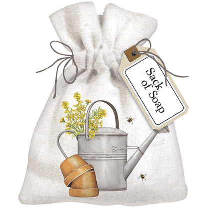 Floral scented triple milled soap in a beautiful linen bag with matching hang tag. Makes the perfect gift!
