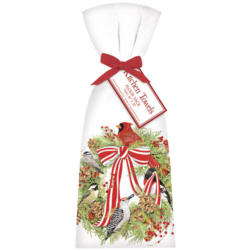 • Two hand folded flour sack towels tied with a matching bow and hang tag