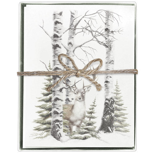 Set of eight 4"x6" blank cards with envelopes in a gift box tied with jute twine.